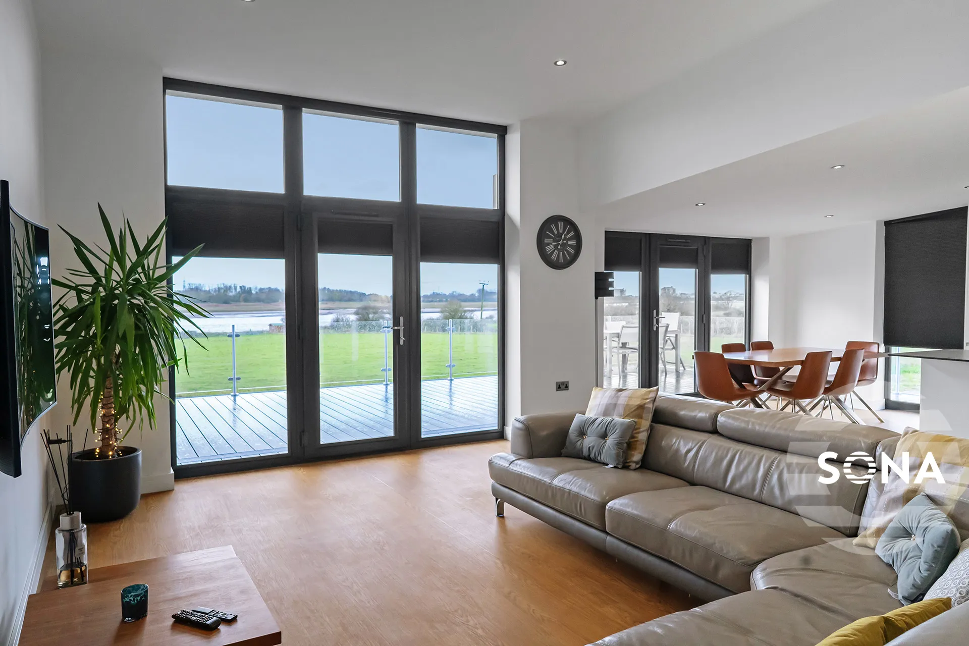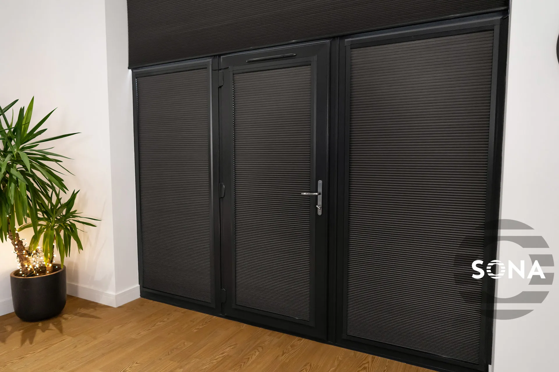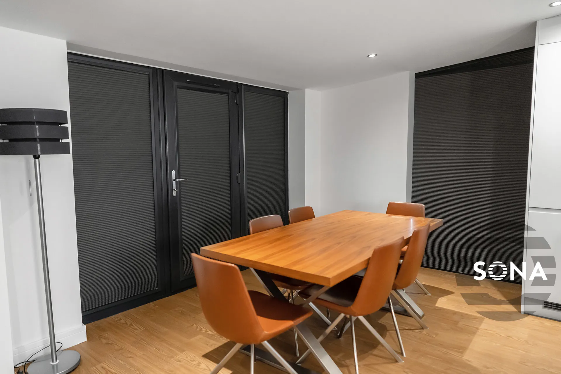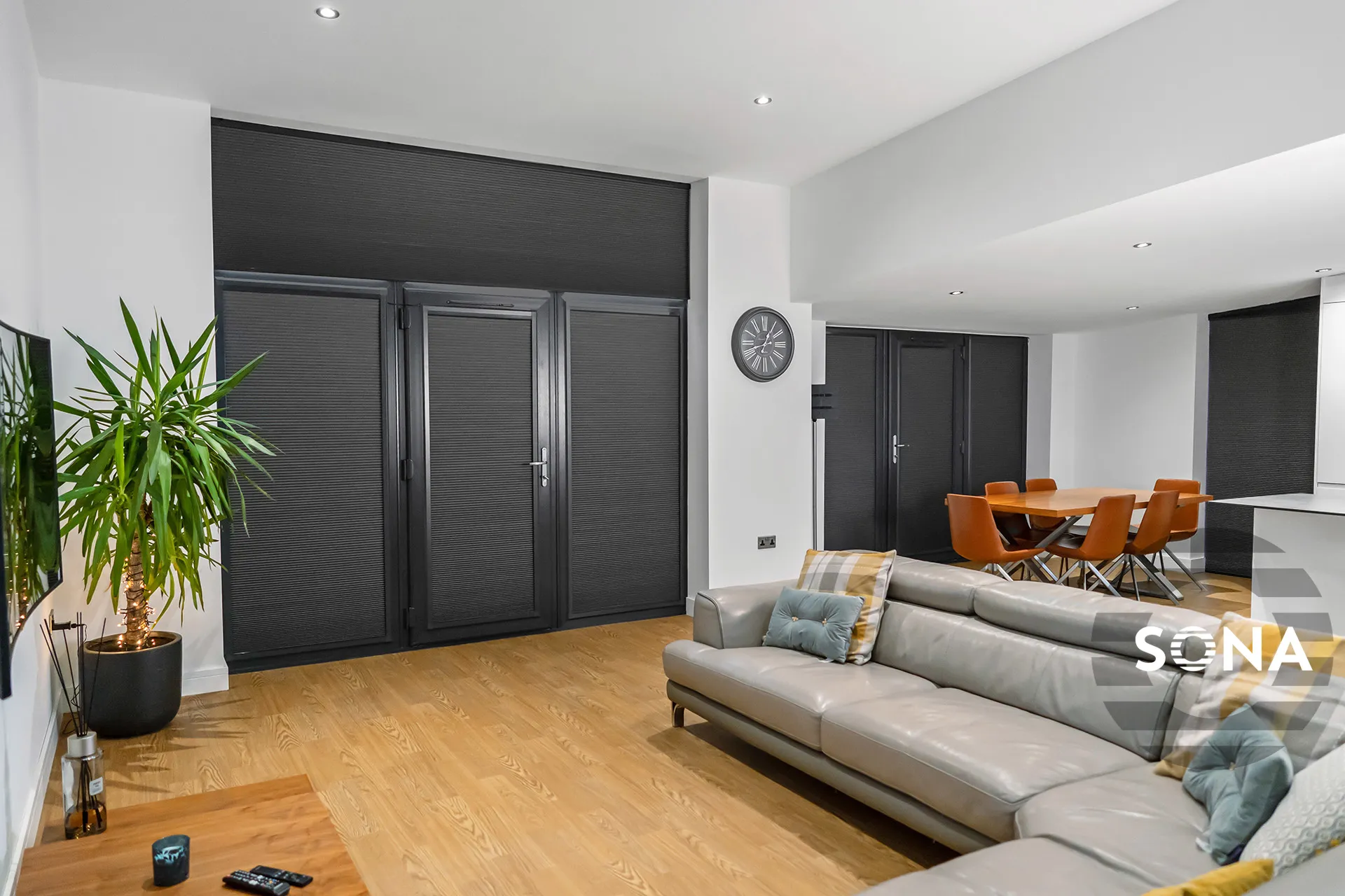 Our Operator client based in Lancashire contacted SONA when they could not find another blinds company to help them solve the issues presented by the bi-fold door design at their two purpose built rental vacation chalets in Hambleton. The client requested to have all the blinds motorised to allow ease of use for the holiday dwellers and also for catering for disability clientele. Having the bedroom blacked out was also a priority.