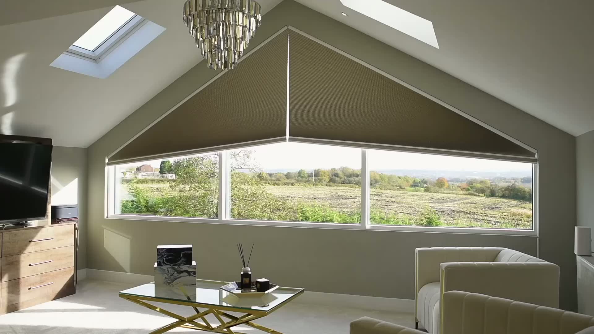 Our shaped shades are also compatible with our smart-hub system, enabling seamless control of your shaped triangle window blinds.