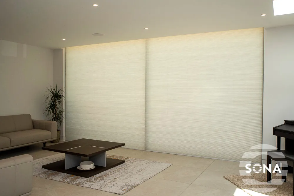 Enhance your windows with SonaCell, our beautifully engineered, automated free-hanging blind. Designed to combine style, high-quality fabric, and precision German engineering, our free-hanging window blinds offer both elegance and functionality. Crafted with intelligent automation, our cellular blinds provide seamless operation and superior insulation. Each blind is hand-built by experts in our UK factory, ensuring exceptional quality and attention to detail.